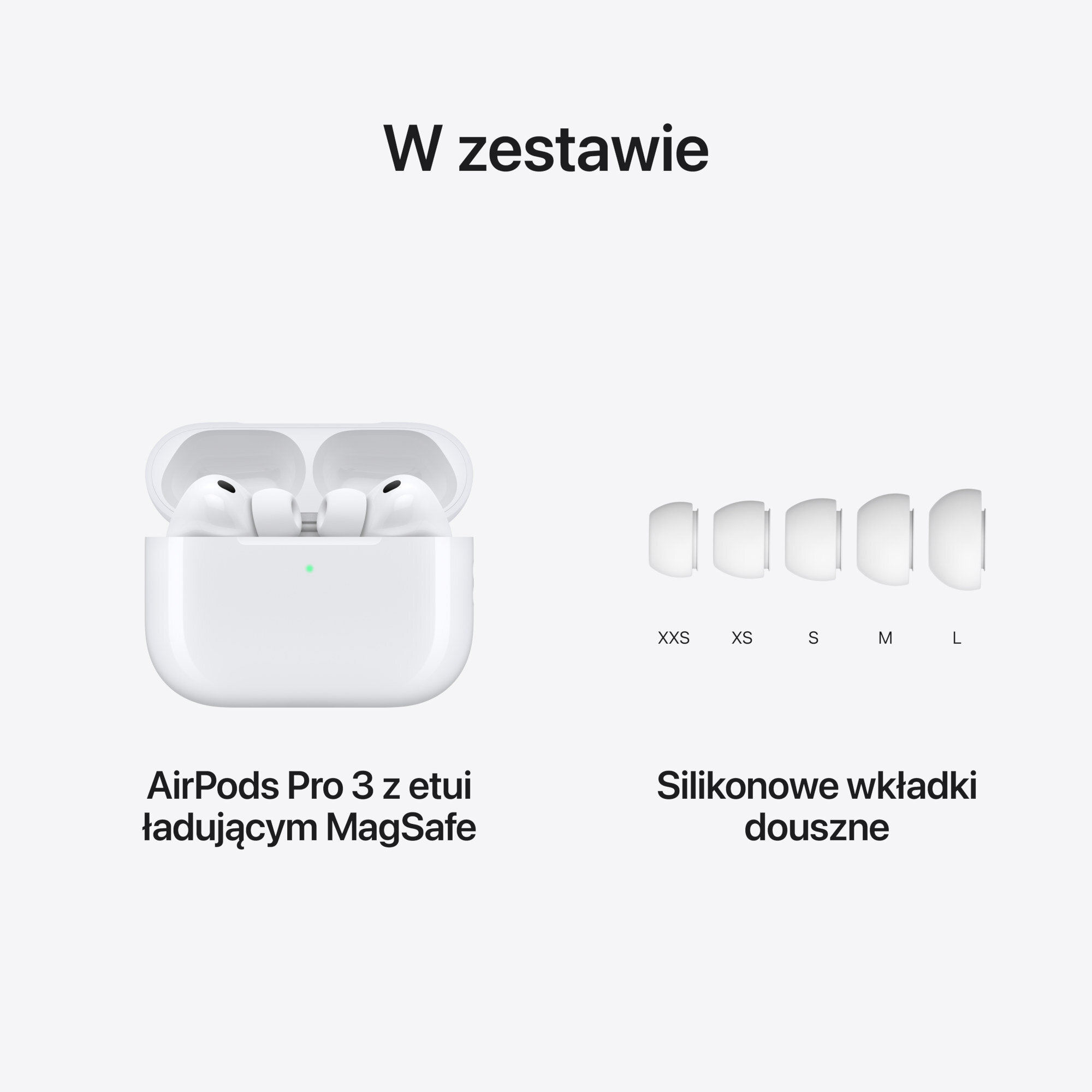 Apple AirPods Pro 3 to nowa generacja słuchawek dokanałowych z jeszcze skuteczniejszą aktywną redukcją hałasu ANC. Oferują doskonałą jakość dźwięku, lepszą baterię i komfort noszenia dzięki udoskonalonej konstrukcji.